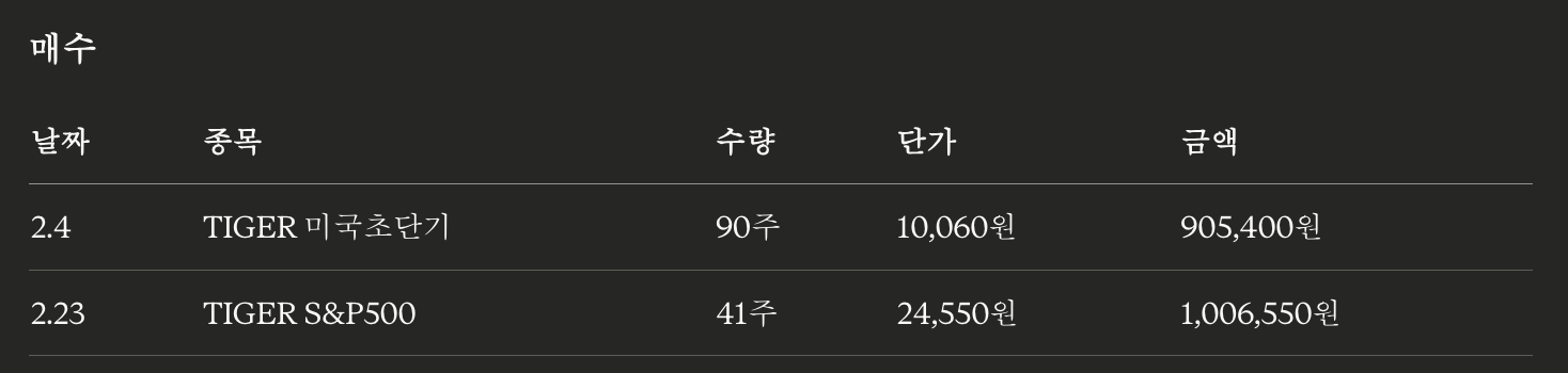 다른 하나는 토스증권으로, 버핏 기준을 통과한 개별 미국주식을 소수만 보유한다. 이 두 계좌의 역할이 다르고, 섞지 않는다.