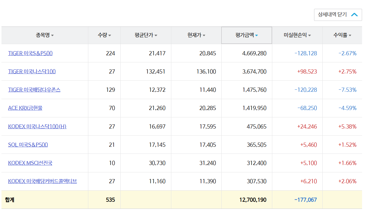 | TIGER 다우존스 | 167.6만원 | 11.6% | -4.27% | ❌ 매수중단 | 🔴 제외 |