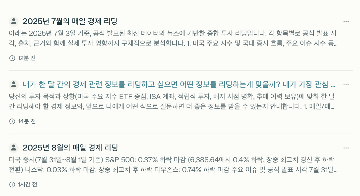 2025년 7월 한 달 동안 내가 기록한 일일 투자 리딩 스레드를 모두 참고해서