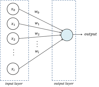 $$ output = f(\sum_{i=1}w_ix_i + b) $$