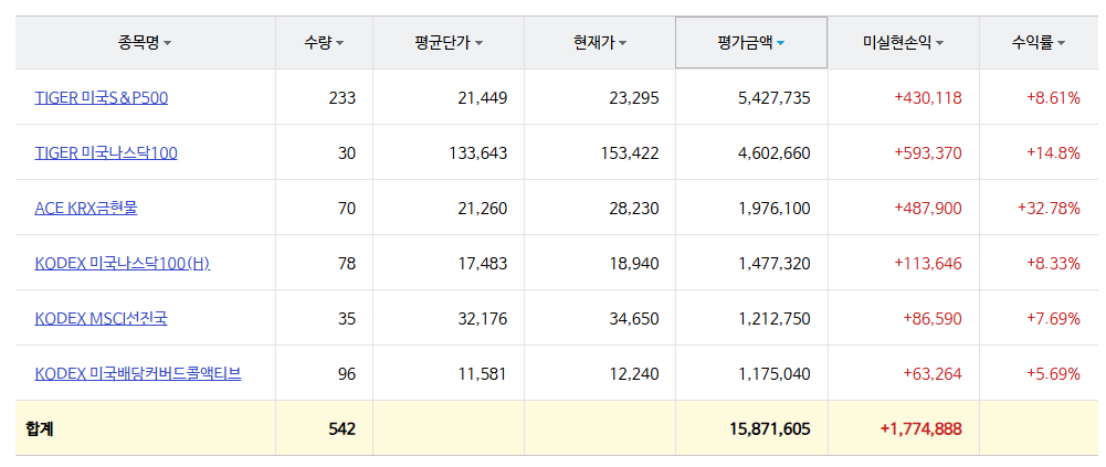 - 금 ETF 일부 익절해 현금 및 재투자 여력 마련,