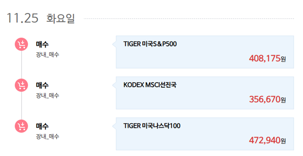 | 환율 약세 활용 | 11월 전반 | 원/달러 1,430→1,467원 (+2.6%), 환차익 자동 생성 | 환노출 ETF 비중 유지, 적립식 지속 |