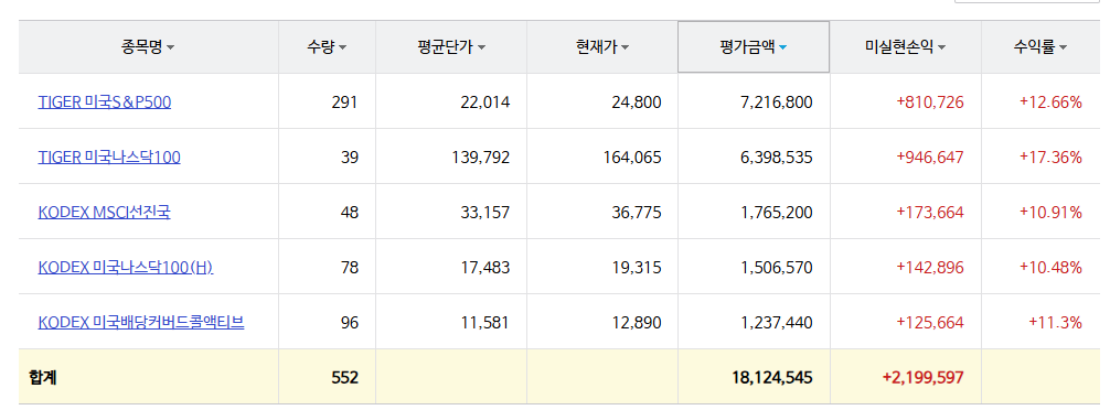 근데 이게 어쨋든 ETF가 안전하긴한데, 자산의 상승은 미미하다는게~ 아쉽다.