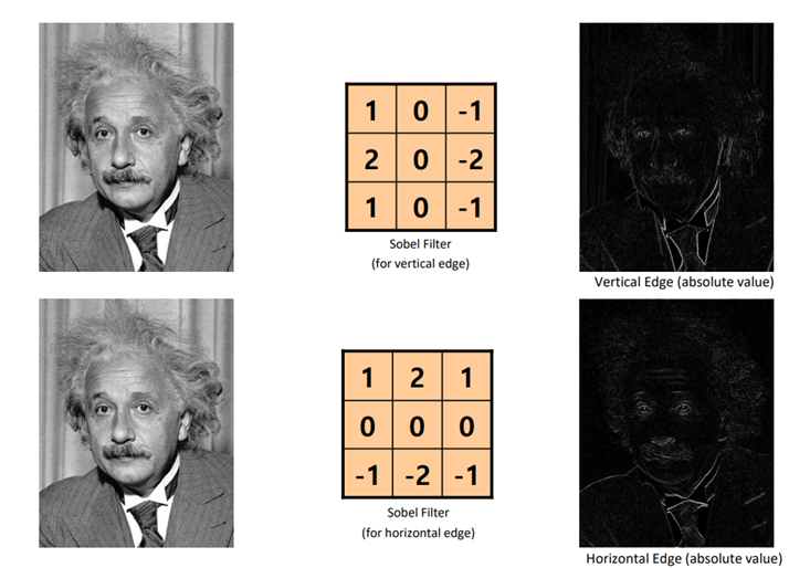 구체적인 예를 들어봅시다. 모서리를 감지하는 필터를 생각해봅시다. 이 필터는 밝은 부분과 어두운 부분이 만나는 경계선을 찾도록 설계됩니다. 필터가 이미지의 한 부분에 왼쪽은 밝고 오른쪽은 어두운 영역을 만나면, 필터의 계산 결과는 매우 큰 양수가 됩니다. 이것은 "여기에 수직 엣지가 있다"는 신호입니다.